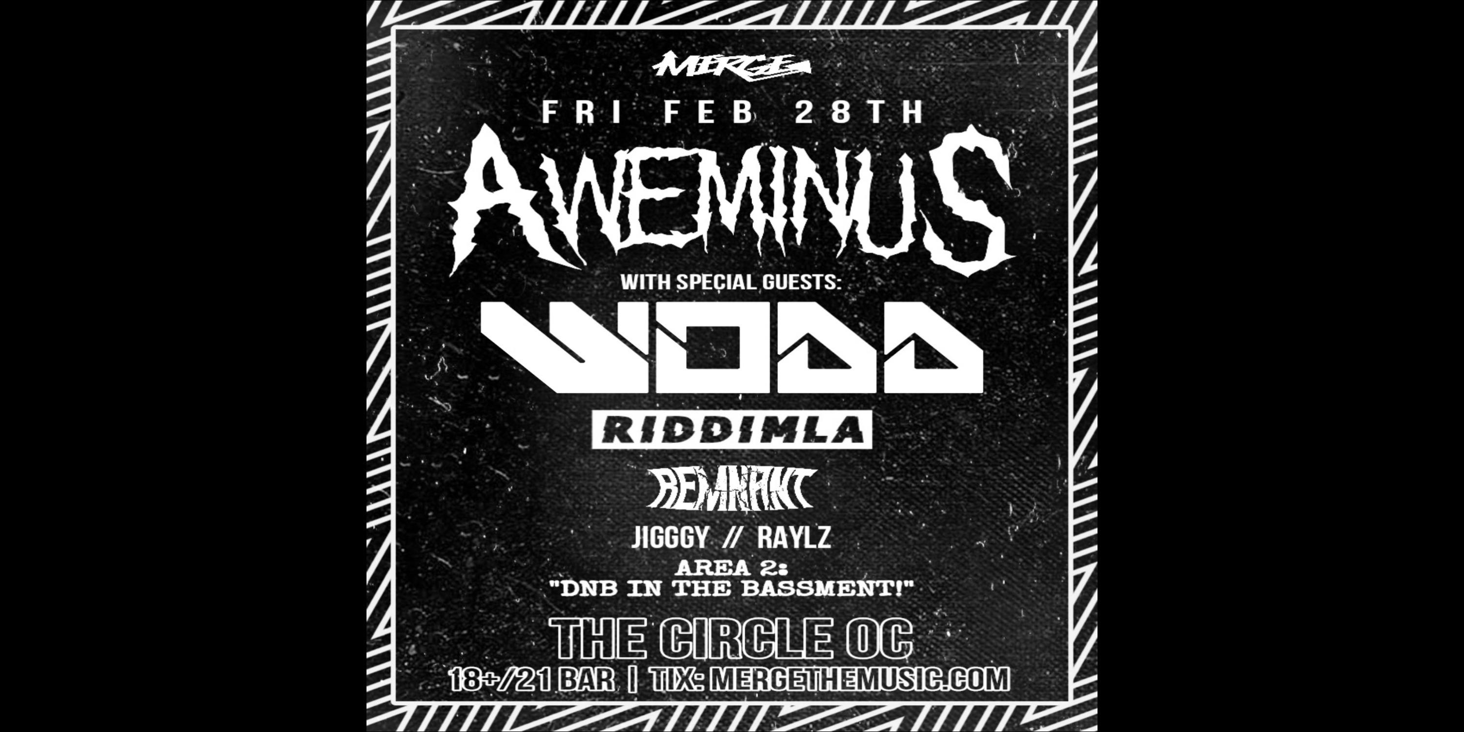 FRIDAY FEB 28TH MERGE PRESENTS LEGENDARY ARTISTS "AWEMINUS" & "WODD" ALONG WITH SPECIAL GUESTS AT THE CIRCLE OC! 2 DANCEFLOORS OF RIDDIM, DUBSTEP & DNB! đ„đ„đ„