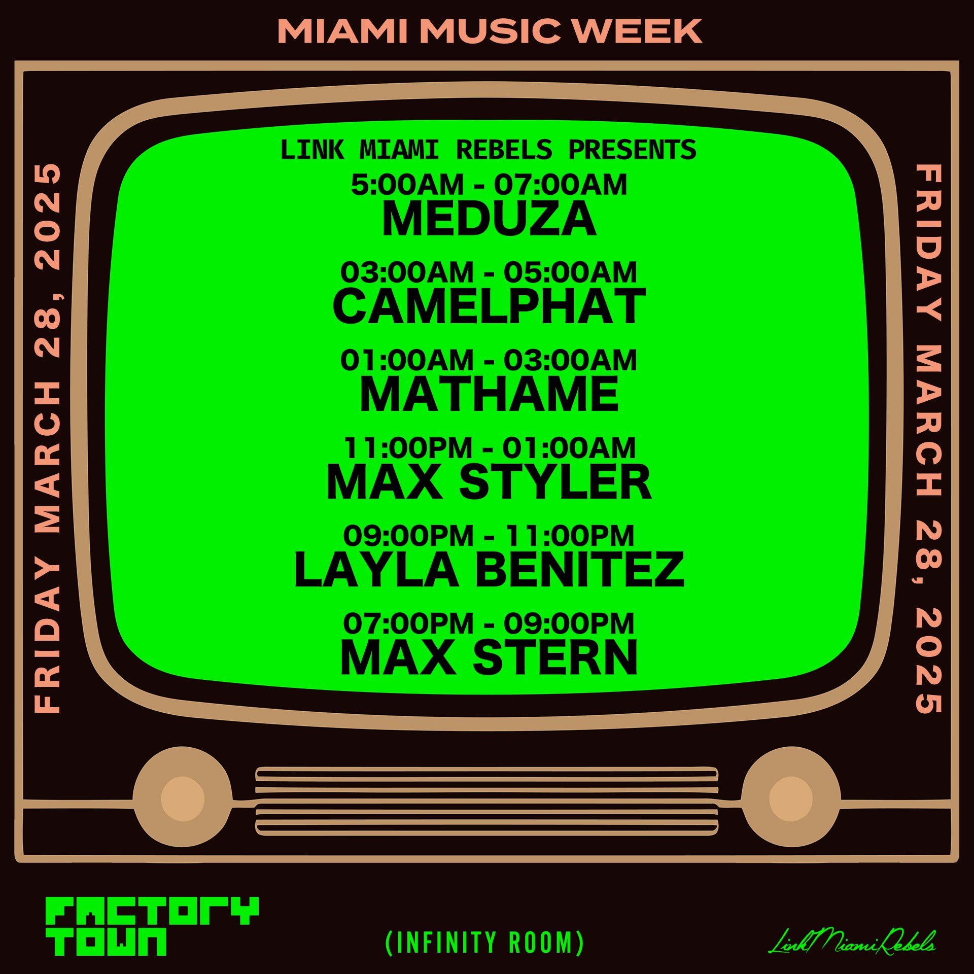 This ticket allows access to all stages at Factory Town. VIP tickets allow entry for Infinity Room VIP area ONLY. Presented by Link Miami Rebels & Insomniac This is an 18+ event