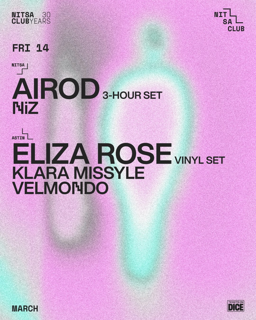 NITSA: AIROD 3-hour set · NiZ ASTIN: Eliza Rose vinyl set · Klara Missyle · Velmondo Presented by NITSA CLUB. This is an 18+ event