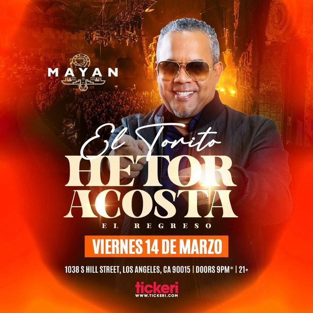 Prepárate para una noche de música espectacular con Hector Acosta El Torito, una de las mayores estrellas de la música latina. Nuestro evento con HECTOR ACOSTA EL TORITO y te esperamos en The Mayan, uno de los mejores lugares para eventos en Los Angeles, CA. Este evento es un concierto y está reservado para aquellos que tienen 21 años o más, así que recuerda traer tu identificación. El evento está programado para el 14 de Marzo de 2025 a las 9:00. No te puedes perder este evento de increíbles ritmos y emociones. Adquiere tus boletos en nuestra página Ticketón.