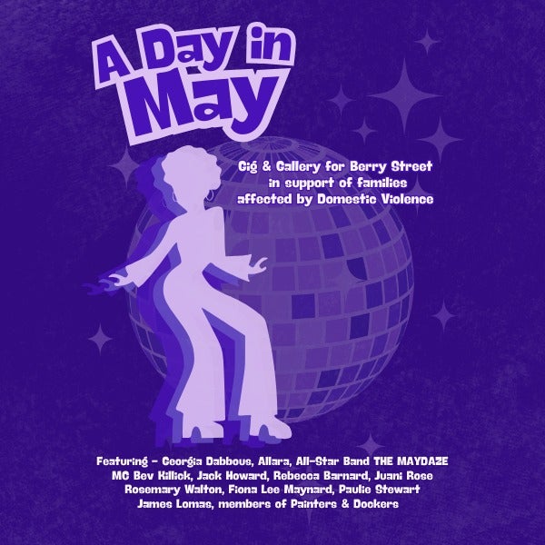 With All star band THE MAYDAZE singing songs of empowerment, this one-time matinee show at The Brunswick Ballroom celebrates music and art to raise funds for Berry Street in support of families affected by Domestic Violence.