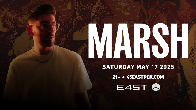 Red Cube Presents MARSH SUPPORT TBA Tickets are on sale Friday, February 21st @ 10:00AM! DOORS @ 10:00PM EVENT TIME: 10:00PM - 2:00AM 21+ w/ Valid I.D. VIP Tables Available. Online reservation available here: http://www.45eastpdx.com/vip Nightclub Rules & Policy: http://www.45eastpdx.com/rules-policy View Upcoming Events at 45 East: https://www.45eastpdx.com/events 45 East 315 SE 3rd Ave. Portland, OR 97214 https://www.45eastpdx.com