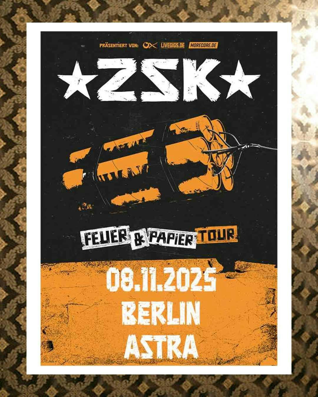 Am 26. September 2025 erscheint mit "Feuer & Papier" das mittlerweile achte Studioalbum der vier Berliner. In einer Zeit, in der die Demokratie in Deutschland unter Druck steht und rechtspopulistische Strömungen an Einfluss gewinnen, liefern ZSK den Soundtrack für den Protest.