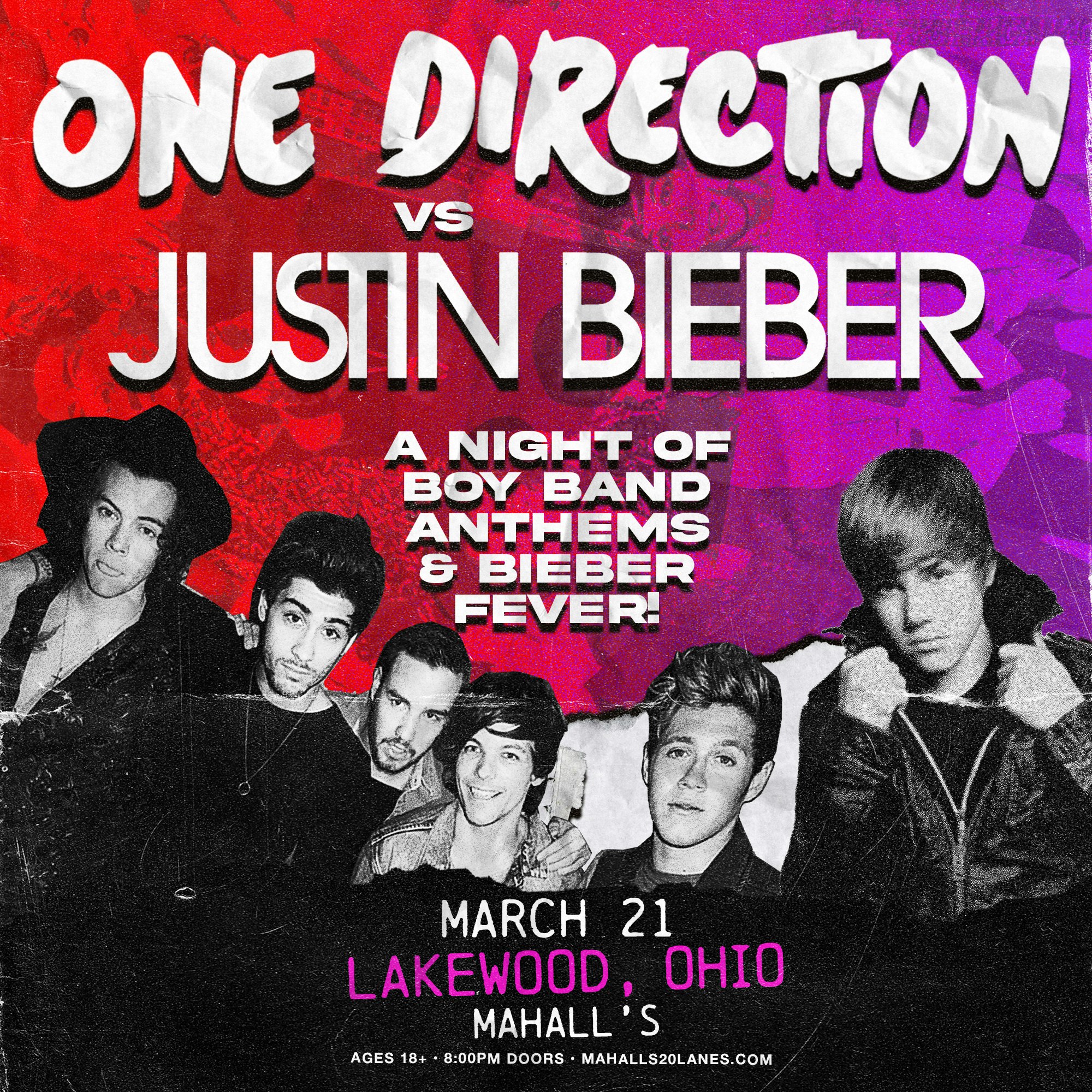 It’s a boy band and Bieber fever bonanza! Get ready for One Direction Vs Justin Bieber– playing hits and fan favorites from their entire discographies, plus the solo projects along the way from Harry Styles to Niall Horan! It’s not a boy band night without favorites from bands like the Jonas Brothers, 5SOS and more! Hope you One Less Lonley Girls are ready to stay Up All Night. Feel free to show off your OG merch, purple hoodies or dress up like it’s HSLOT and meet us on the dance floor for the best night ever!