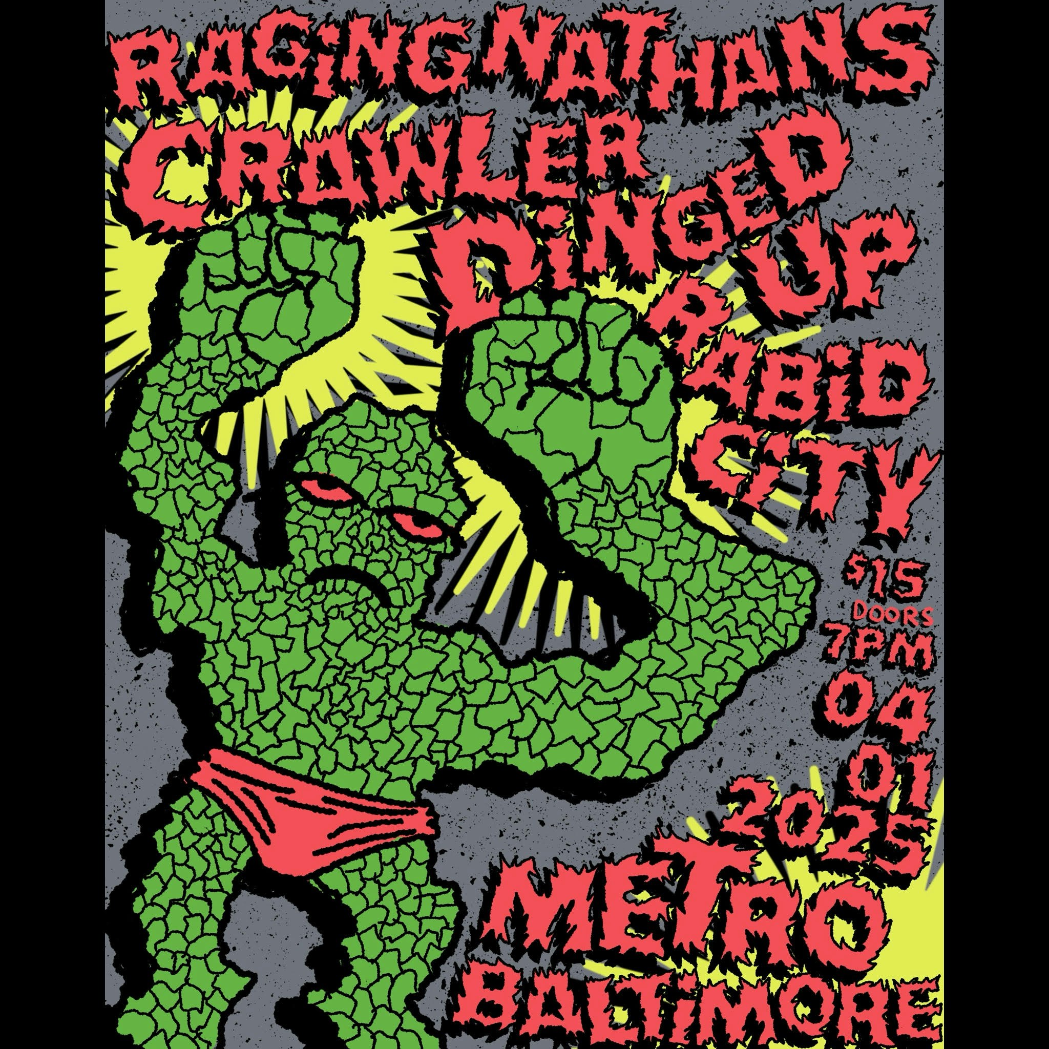 RAGING NATHANS with Crawler, Dinged Up and Rabid City Tuesday April 1, 2025 Doors at 7:00 PM, Show at 8:00 PM Presented by Metro Gallery LLC. All ages