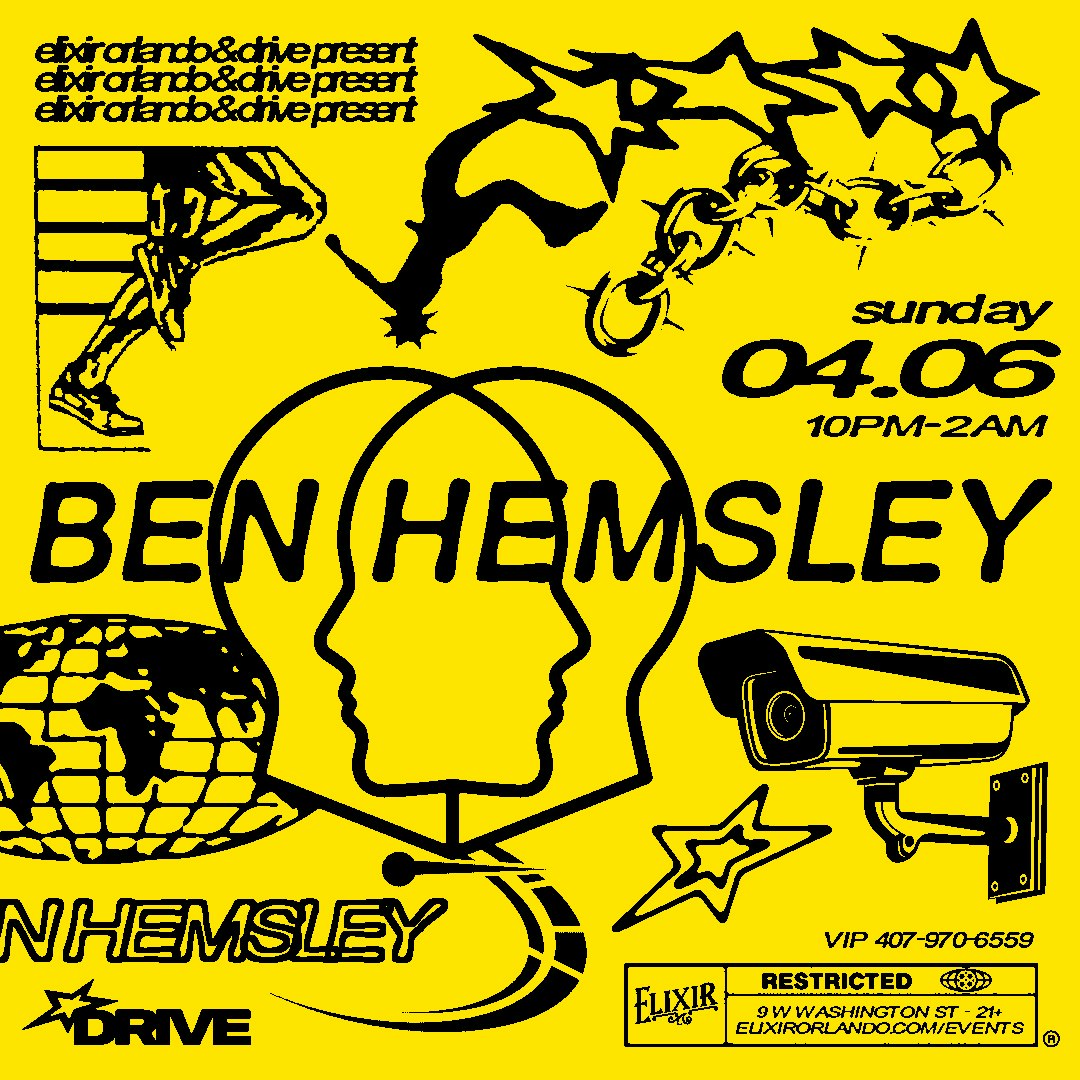 Elixir, Real Talent & Drive Projects Present: Ben Hemsley on Sunday, April 6th. Presented by ELIXIR Orlando. This is an 21+ event