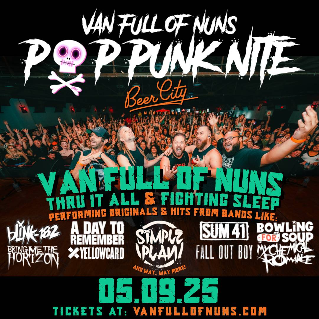 Their goal? For you to discover your next favorite original pop-punk band. THEN, they will keep the party going with songs from bands like Blink-182, My Chemical Romance, Fall Out Boy, Sum 41, and more, all performed LIVE as a full band by Van Full of Nuns!