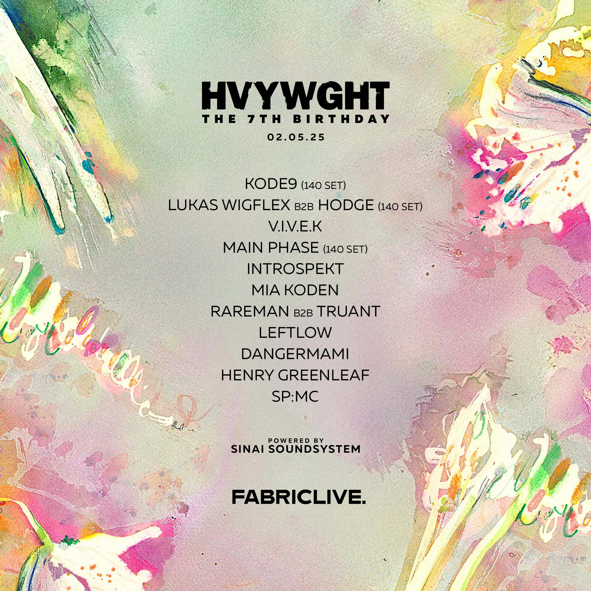 Celebrating 7 years of HVYWGHT, back at fabric, powered by the mighty Sinai Soundsystem.