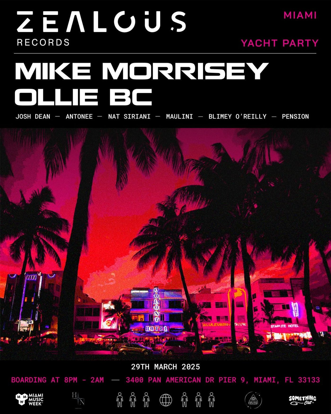 Headlined by Mike Morrisey and Ollie BC, with support from Josh Dean, Antonee, Nat Siriani, Maulini, Blimey OāReilly, and Pension, expect a night of electrifying beats and Miami magic.