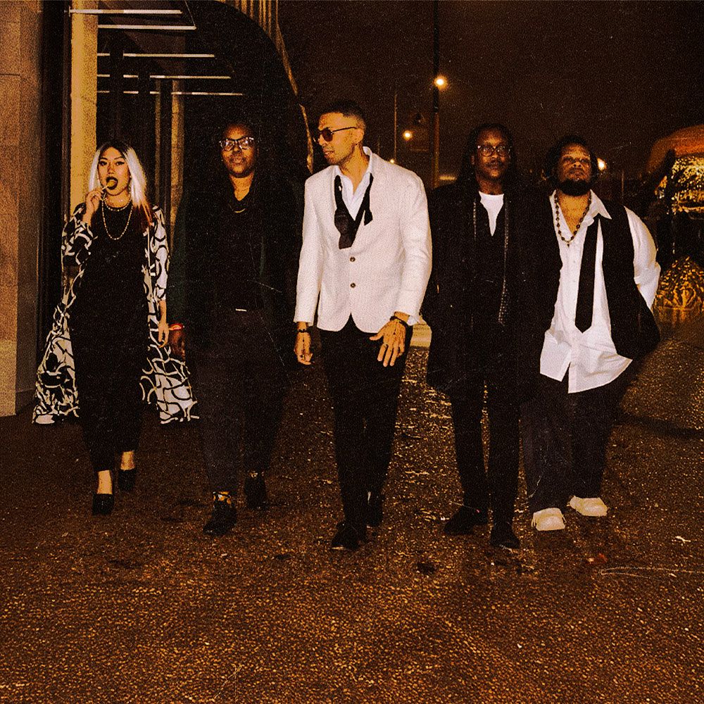 Nunley (drums), Rachelle Love (percussion), Mariel Jacoda (vocals), Sherdeill (DJ) Breathett (bass), and Willy Simms (guitar).