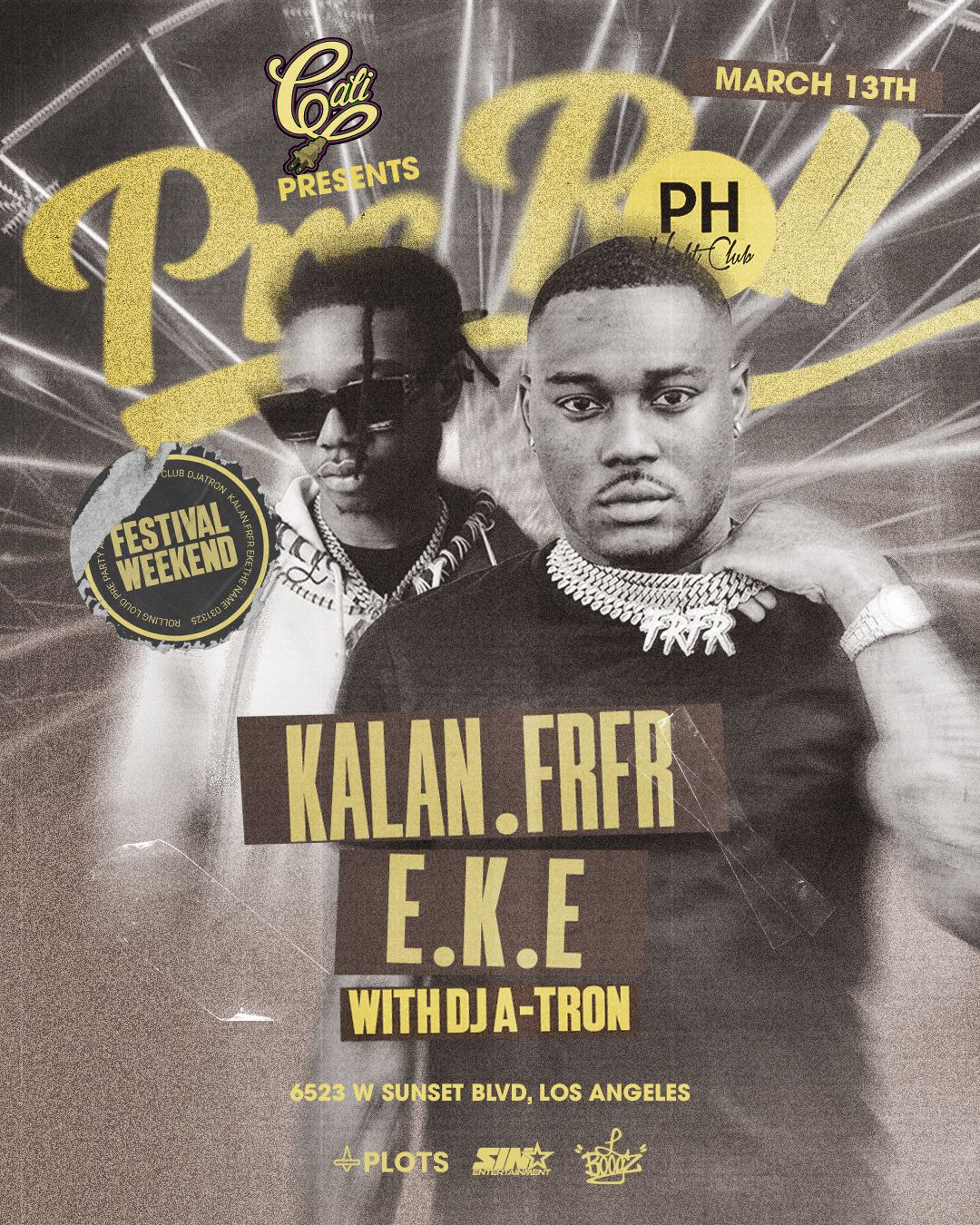 Cali plug presents the official Festival weekend PRE with live performances by Kalan Fr.Fr and EKE.the name at Penthouse this Thursday. About to be a movie .