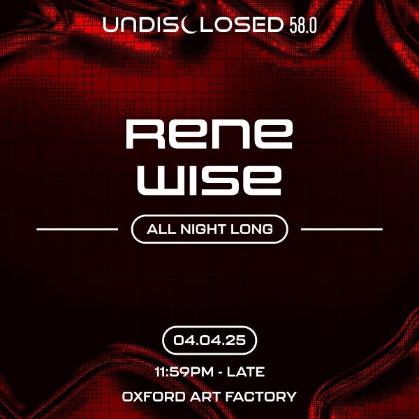 It is an honour to present the Australian debut of one of today's most sought-after underground techno artists, Rene Wise. To mark this special occasion, we have invited Rene Wise to perform the first ever all-night-long set at UNDISCLOSED. The industrial atmosphere and world-class D&B sound system at Oxford Art Factory will create the perfect setting for this unforgettable night on Friday April 4th.