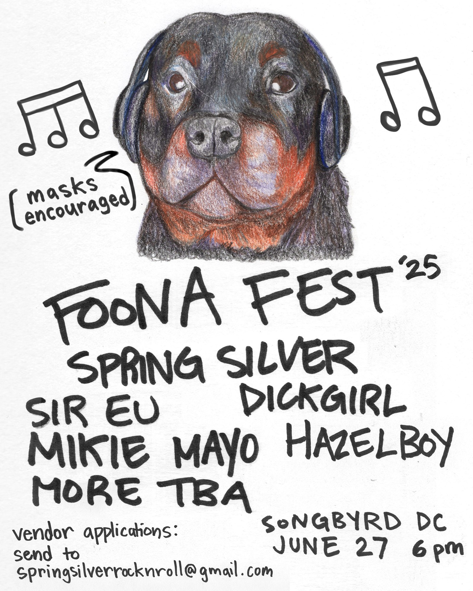 Put yr pawz up for a night of genre-bending fun! The third annual Foona Fest is back! Featuring Spring Silver, Sir EU, Dickgirl, Mikey Mayo, Hazel Boy, more TBA Presented by Songbyrd. This is an all ages event