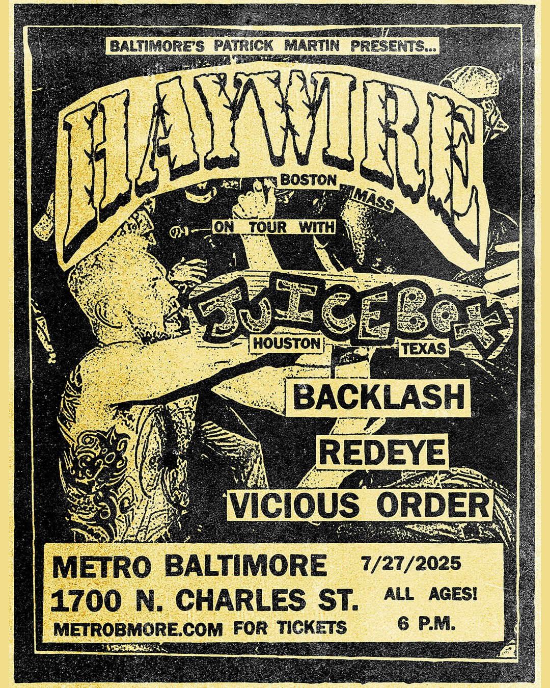HAYWIRE with Juicebox, Backlash, Red Eye and Vicious Order Sun. Jul. 27th 2025 Doors: 6:00 PM // Show: 7:00 PM All Ages Presented by Metro Gallery LLC. All Ages