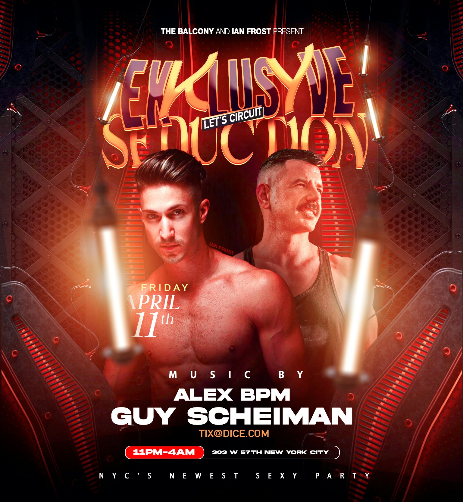 From the masterminds behind NYC’s most exclusive parties, The Balcony, and the legendary host Ian Frost, we present an electrifying experience featuring internationally acclaimed DJ Guy Scheiman from Tel Aviv, known for his high-energy, hypnotic sets that command dance floors across the globe. Starting off the night is rising underground sensation Alex BPM delivering deep, pulsating beats that will keep you moving.