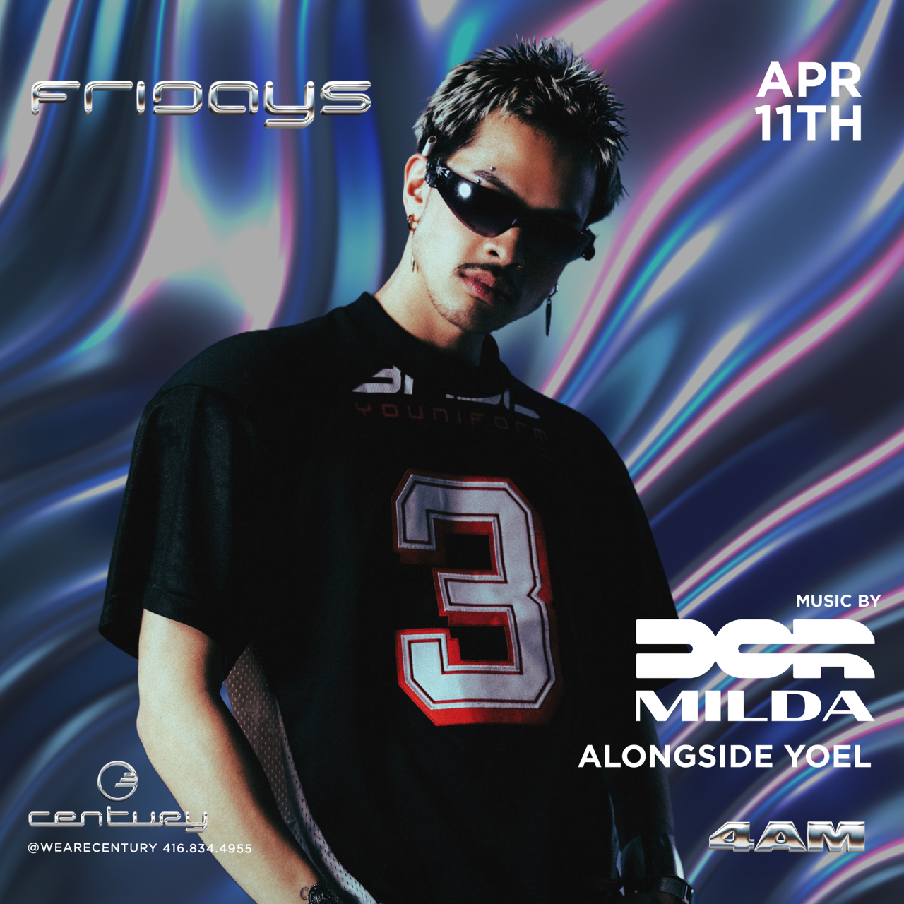 Century Fridays - 4AM last call. Music Programming includes a mixture of hip hop and top 40 Dance hits by Special Guest DJ DCR Milda alongside YOEL.