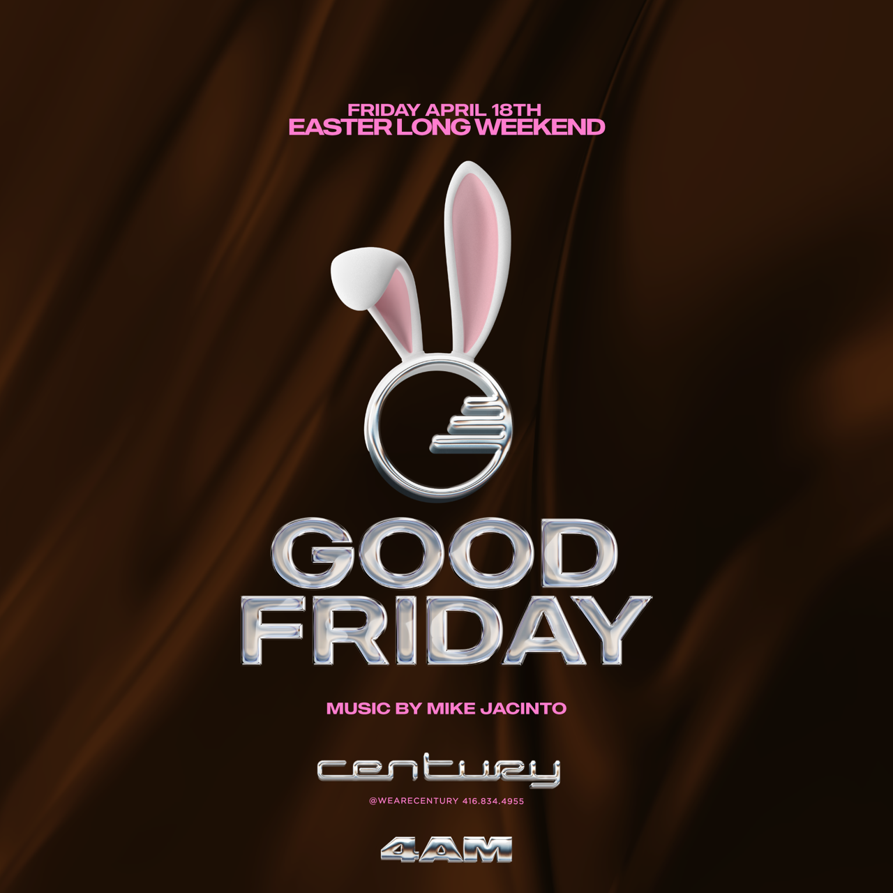 Century Fridays - 4AM last call. Join us for Easter long weekend celebrations! Music Programming includes a mixture of hip hop and top 40 Dance hits by Mike Jacinto.