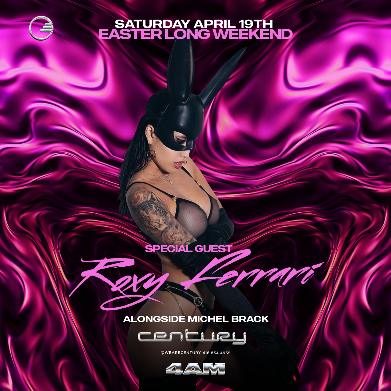 Century Saturdays - 4AM last call. Music Programming by special guest DJ Roxy Ferrari alongside DJ Michel Brack.