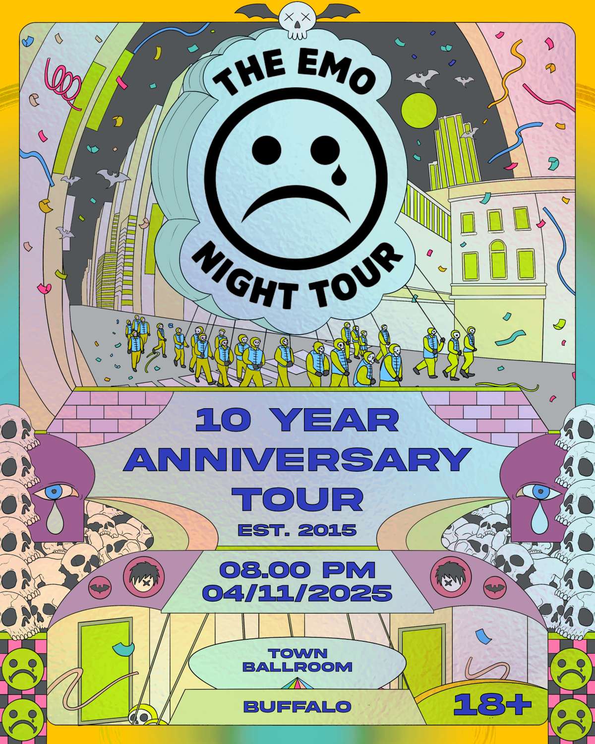 Funtime Presents The Emo Night Tour 10 Year Anniversary Tour est. 2015 Ages 18+ Government Issued ID Required This show has been postponed from April 11 to May 3. All tickets purchased for the original date will remain valid.