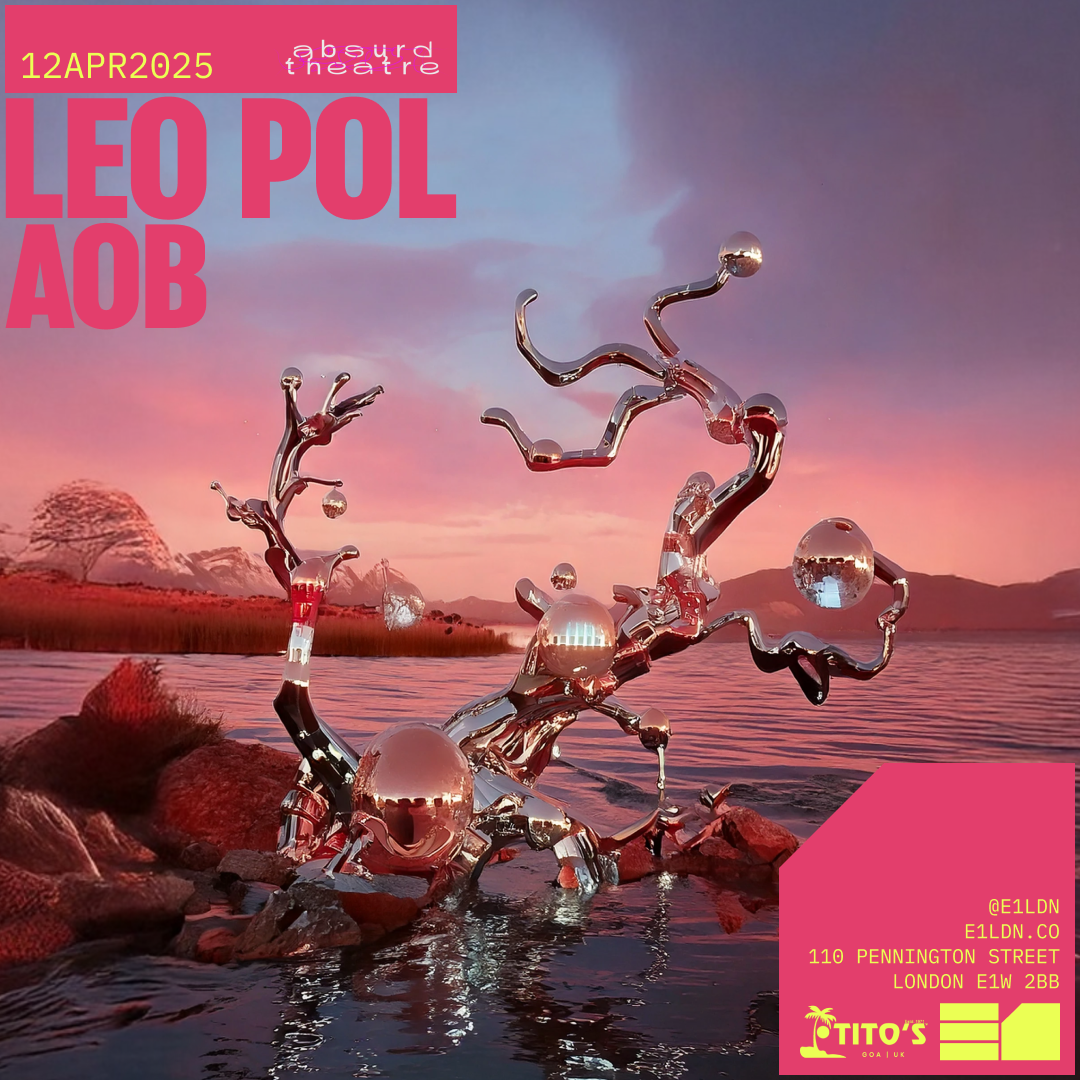 We're excited for Absurd Theatre to bring us Leo Pol and AOB at E1 on 12 April. It will be a night filled of deep grooves, high energy, and pure vibes, who’s ready? Presented by E1 London. This is an 18+ event