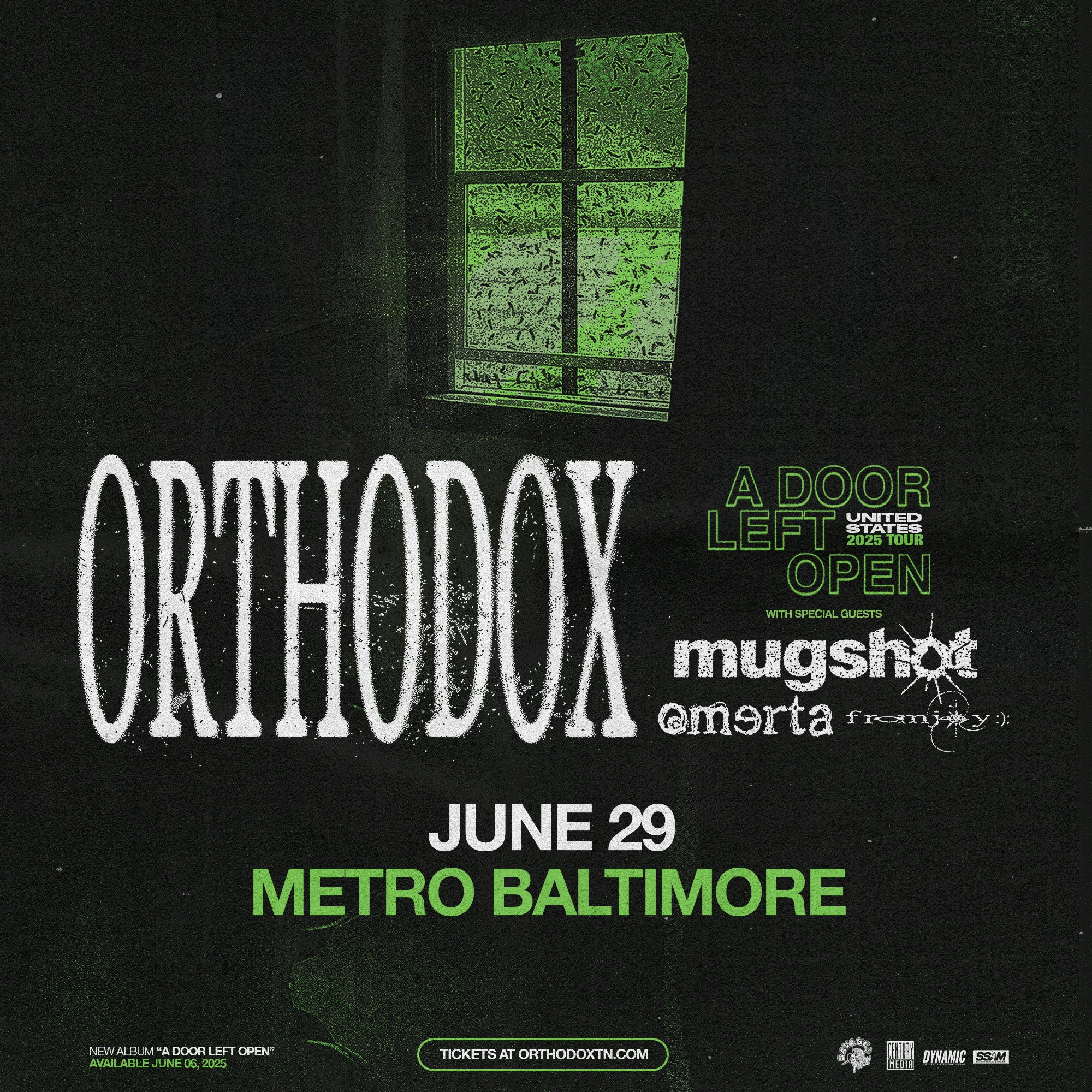 ORTHODOX with Mugshot, Omerta and fromjoy Sunday June 29, 2025 Doors at 6:00 PM, Show at 7:00 PM All Ages Presented by Metro Gallery LLC. All Ages