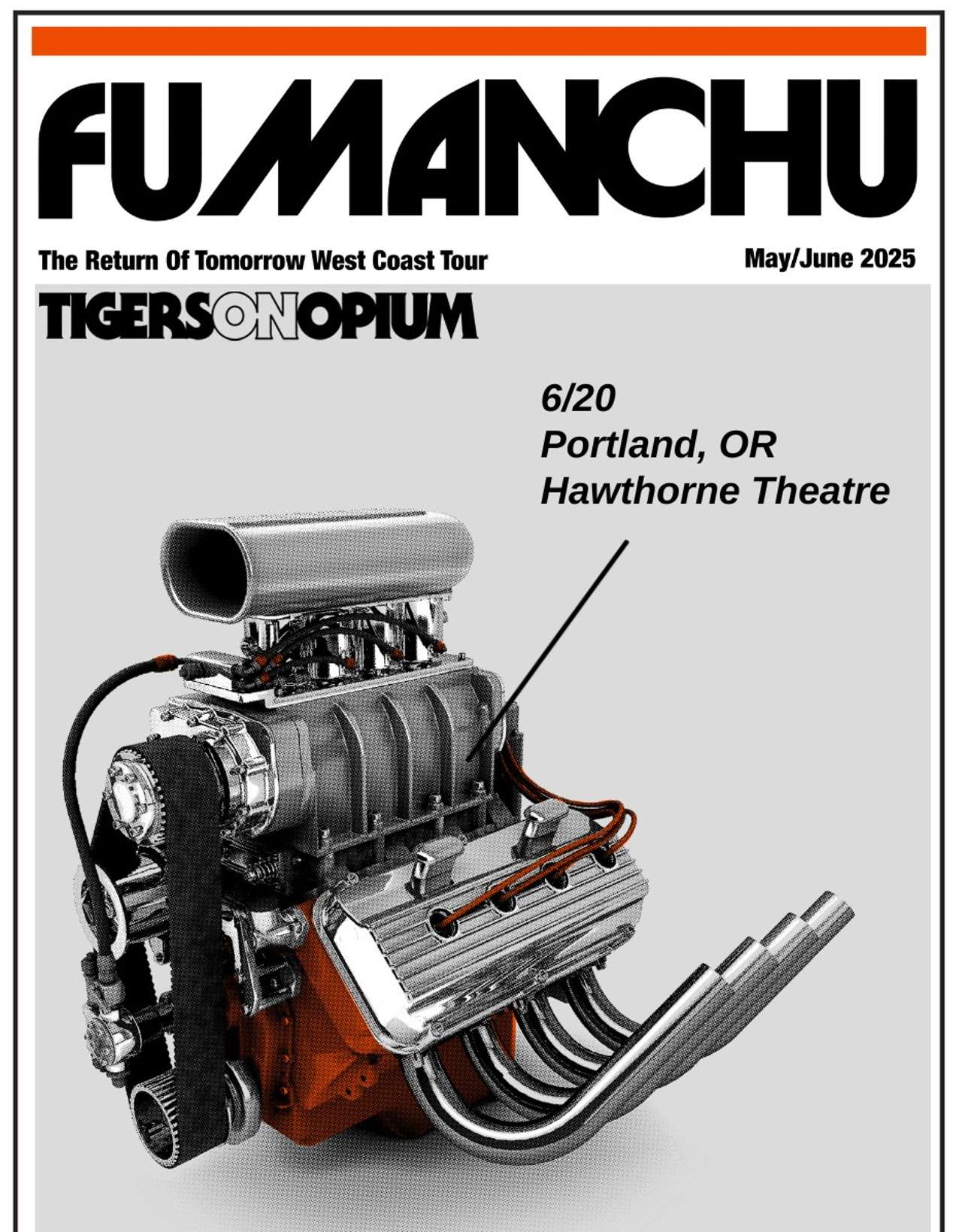 Mammoth NW Presents: Fu Manchu w/ Tigers on Opium Friday, June 20th, 2025 8:00PM Hawthorne Theatre 21 & Over Only w/ Valid Photo ID No refunds or exchanges. All sales final.