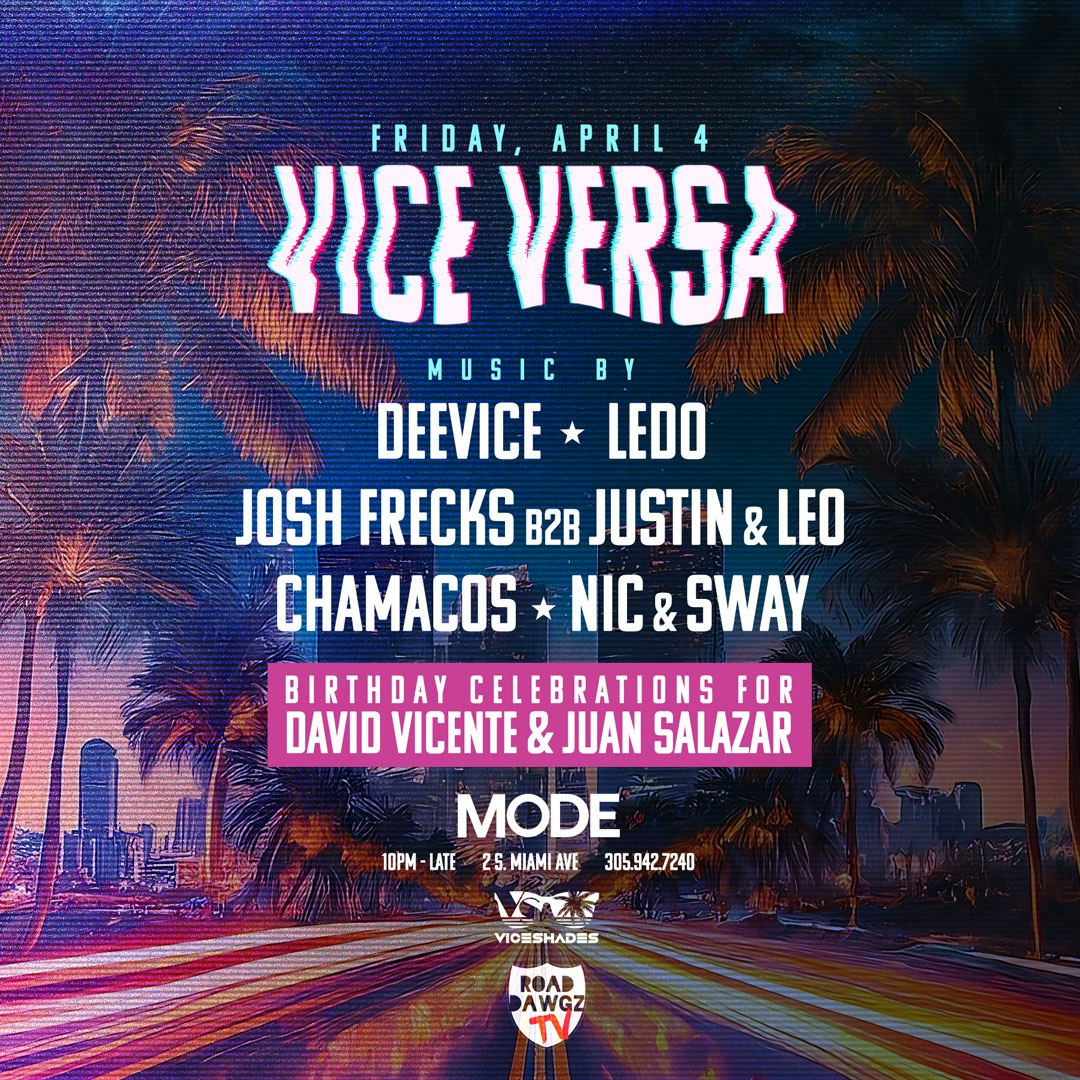 Vice Versa returns to MODE on Friday, April 4th for a special edition full of celebration, connection, and signature sounds. This time, we’re lighting the night for Deevice’s birthday, alongside another birthday celebration for Juan Salazar of Road Dawgz TV.
