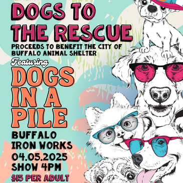Join us at Buffalo Iron Works for a family friendly event, featuring Dogs In A Pile on April 5th! Doors open at 3:30, show 4 to 5pm.
