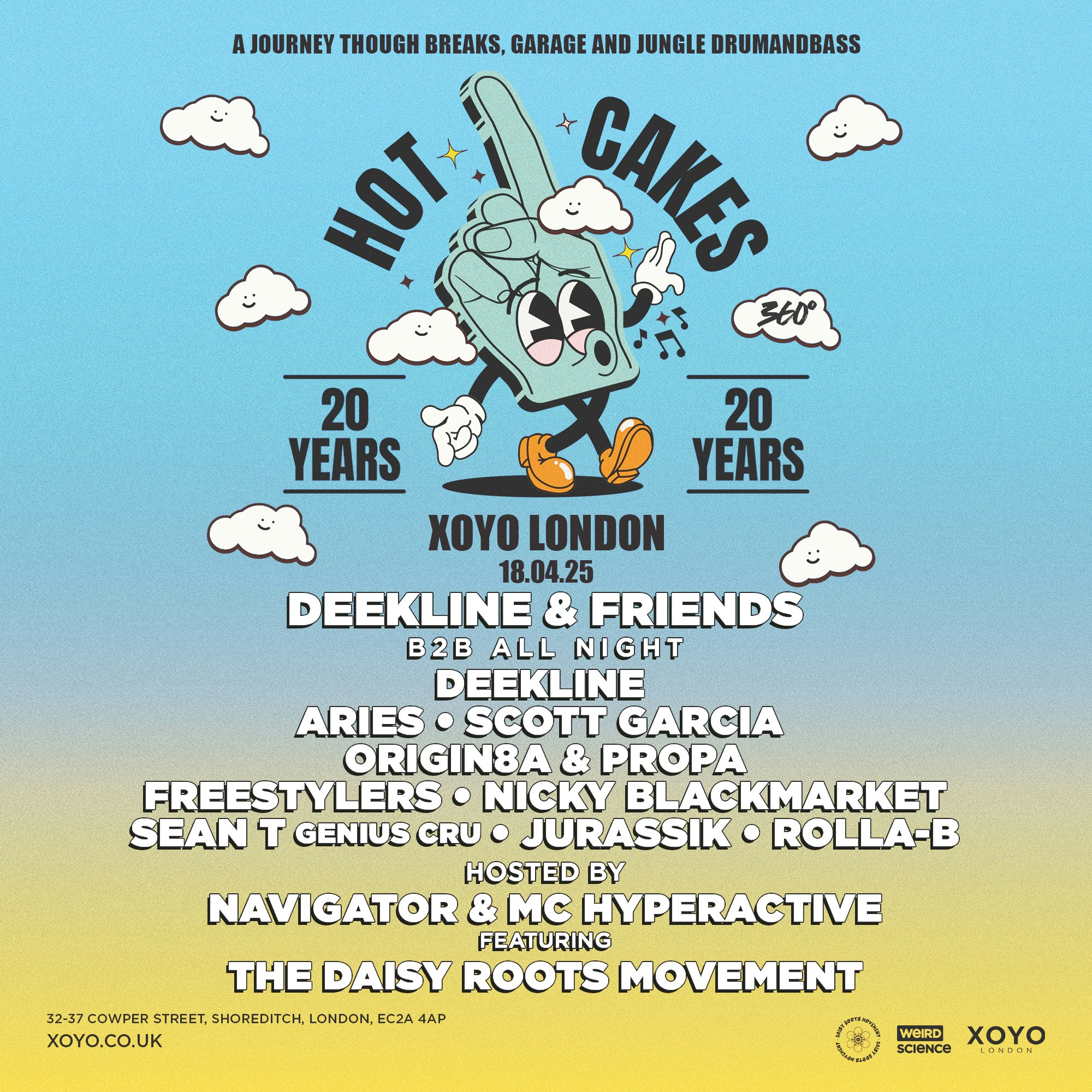 Founded by Deekline in 2005, Hot Cakes has been a powerhouse of killa breaks, bass, and electro for two decades. A driving force in the electronic music scene, it has showcased releases from some of the world's most renowned producers, solidifying its reputation as a go-to label for rambunctious, bombastic beats.