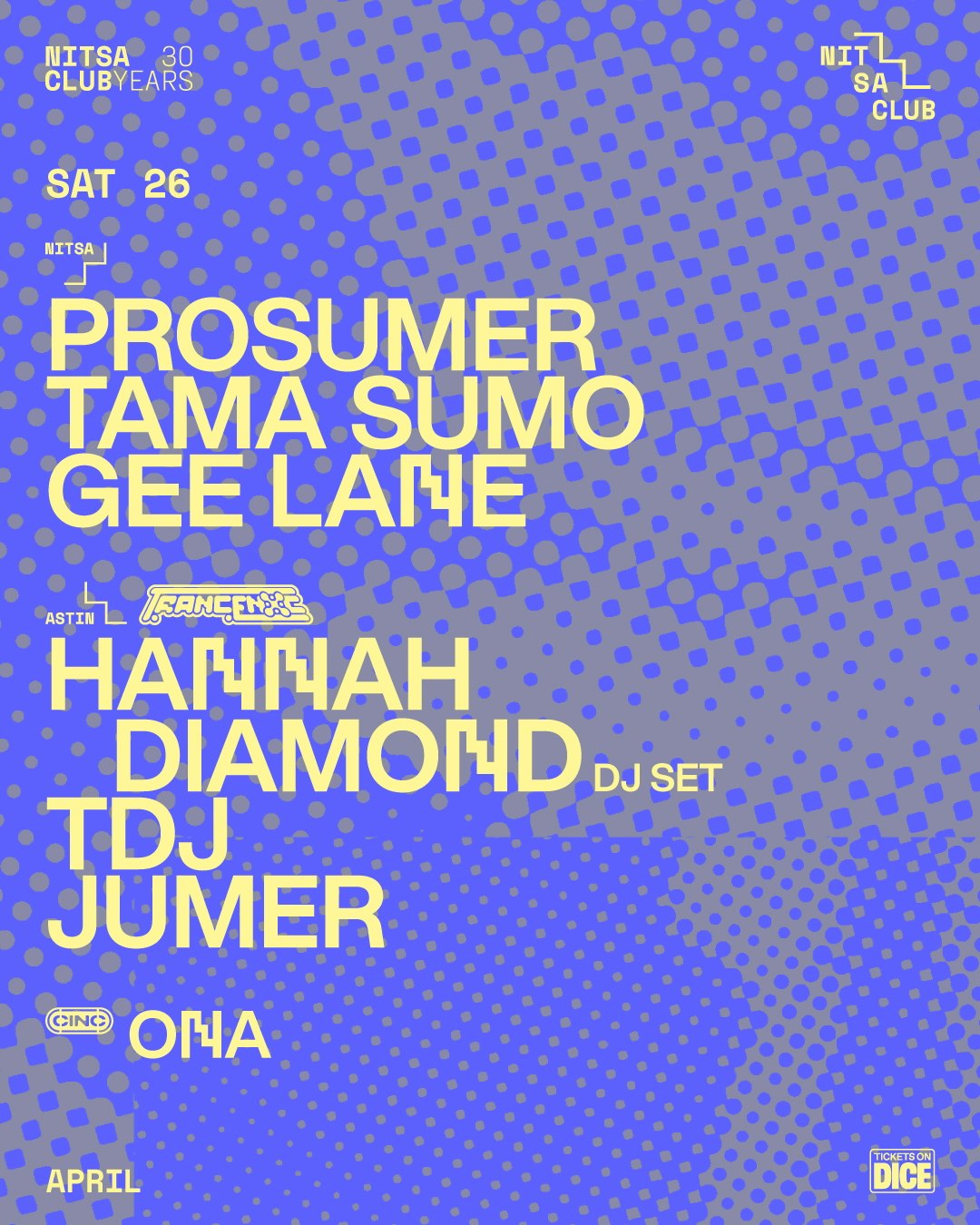 NITSA: Prosumer · Tama Sumo · Gee Lane ASTIN: TRANCE NXC | Hannah Diamond live · TDJ · JUMER Presented by NITSA CLUB. This is an 18+ event