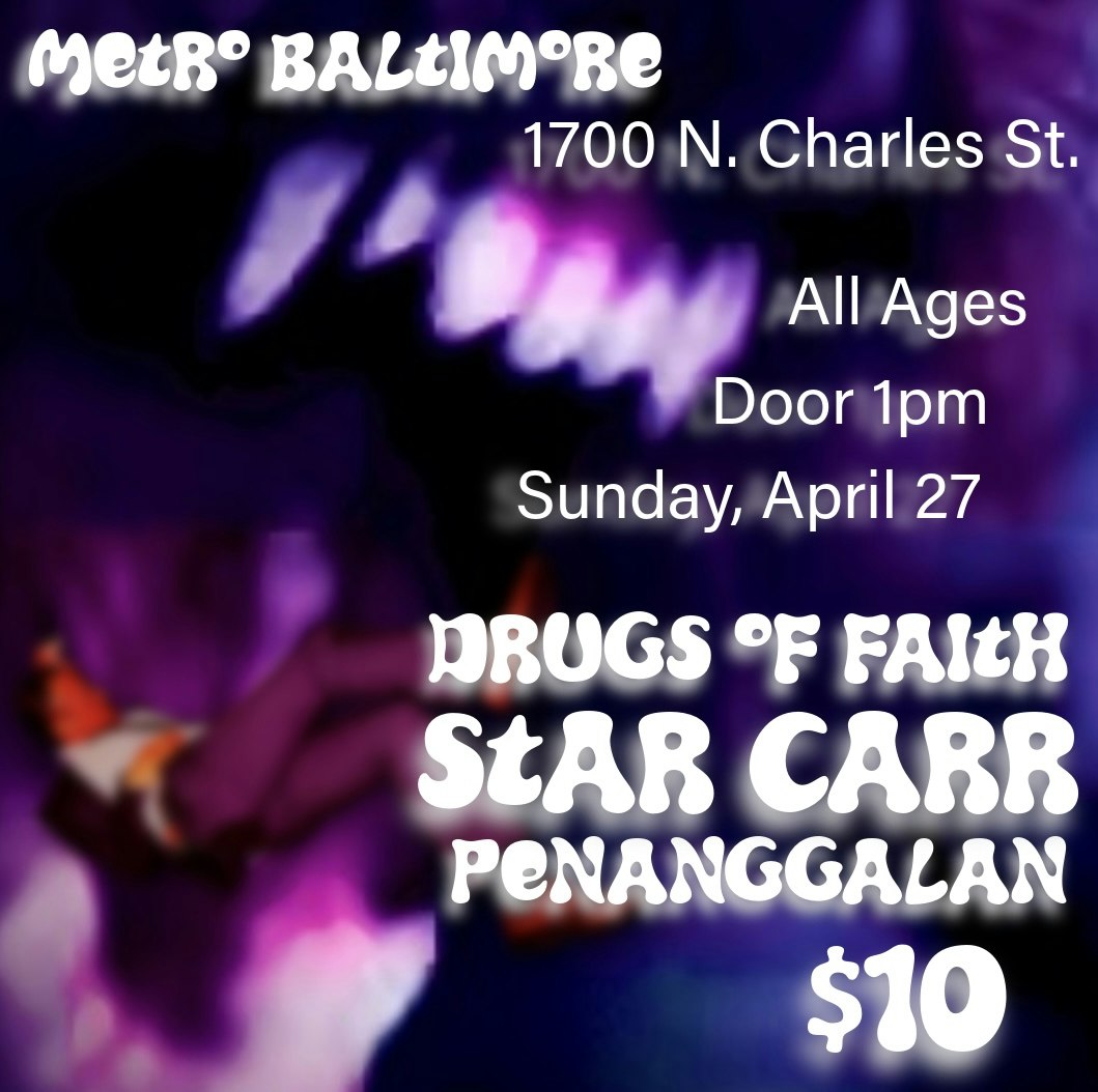 DRUGS OF FAITH Star Carr and PENANGGALAN Early Show Doors at all 1:00 PM, Show 2:00 PM All Ages Presented by Metro Gallery LLC. All Ages