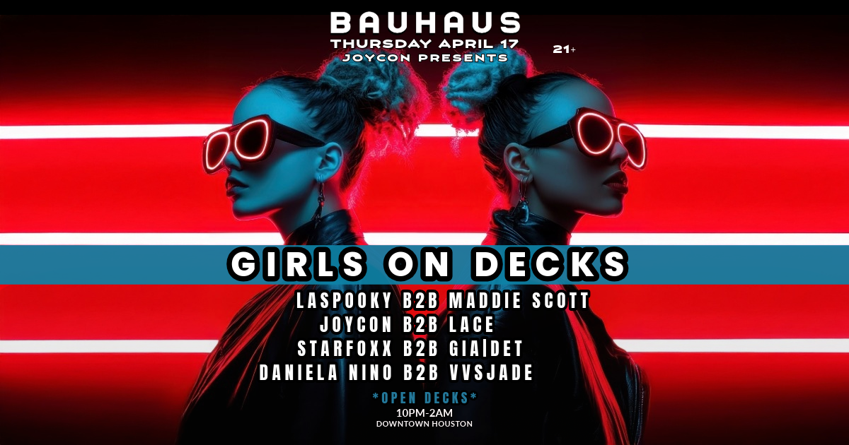 + We will have OPEN DECKS inside the lounge area for any Female DJ who wants to play.