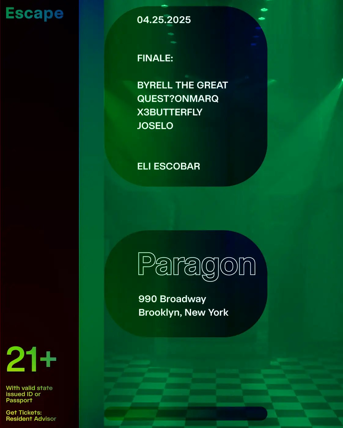 Finale: Byrell The Great, quest?onmarq, x3butterfly, JOSELO + Eli Escobar Presented by Paragon. This is a 21+ event.