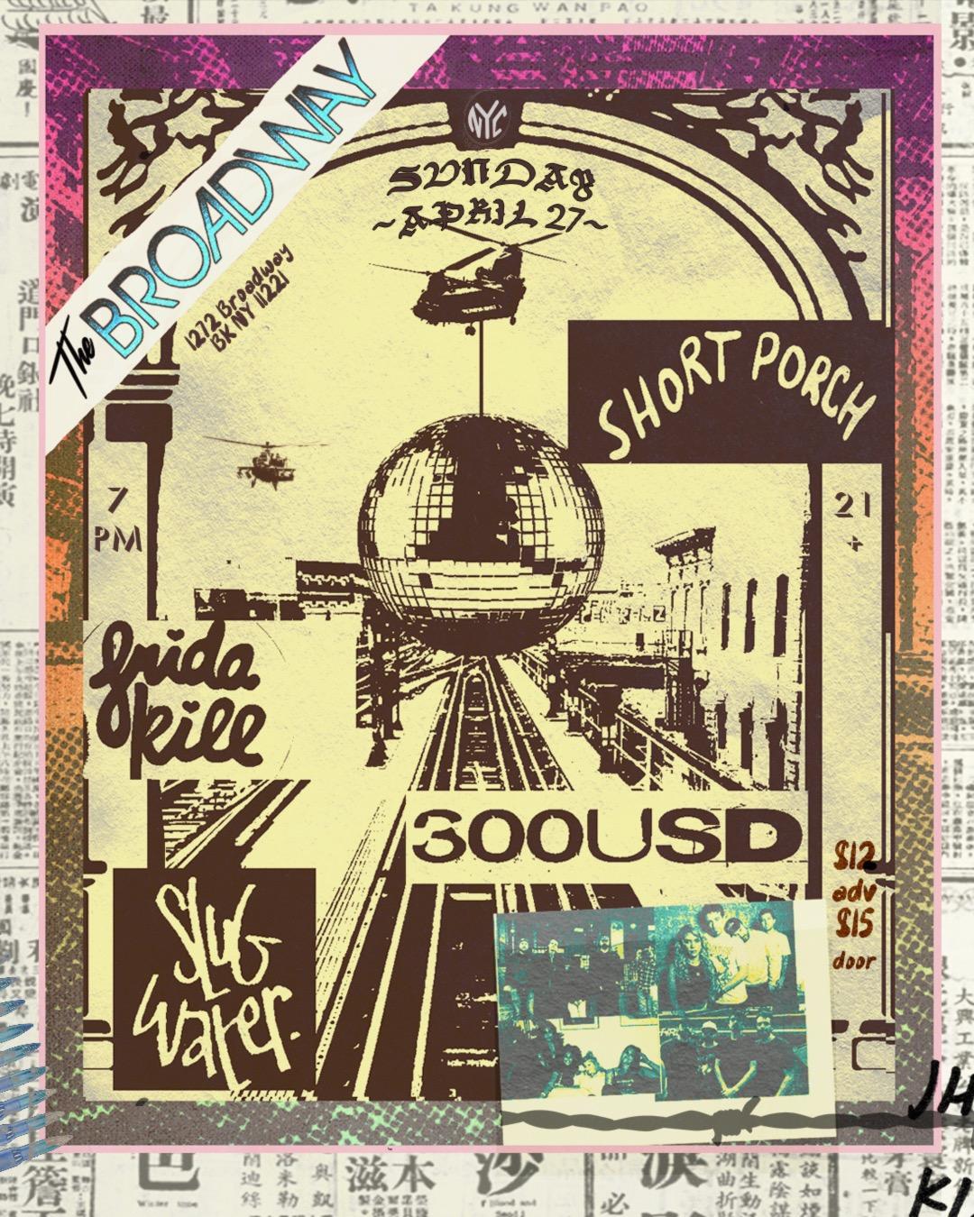 Short Porch headline The Broadway with Frida Kill, 300USD and Slugwater