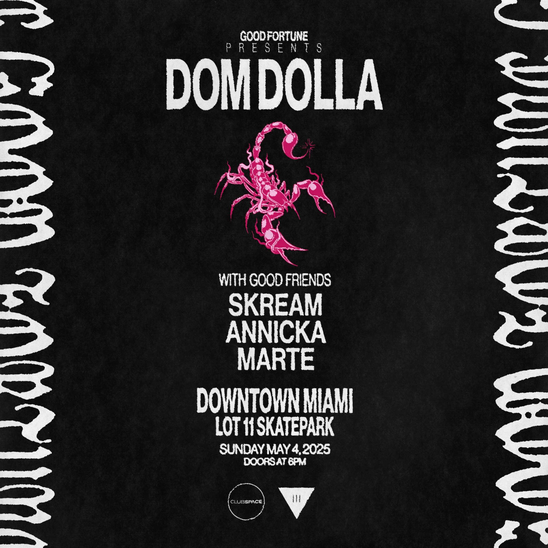 III Points x Club Space present Dom Dolla at Lot 11 for a special pop up set on Sunday of Race Week. Presented by Link Miami Rebels. This is an 18+ event