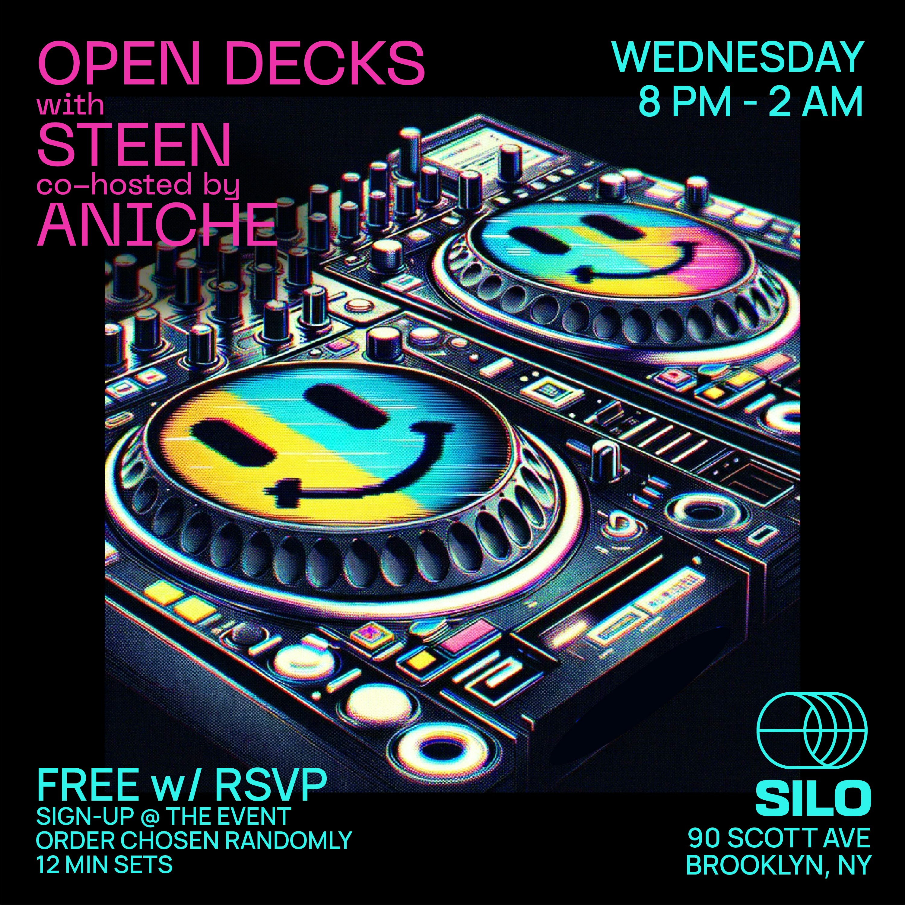 Hosted by DJ and musician Steen, Open Decks is a creative and fun space where DJs can hang and share their house and techno music live. Hear your favorite or original tracks on Silo's front room sound system, a custom 15,000 watt Danley powerhouse.