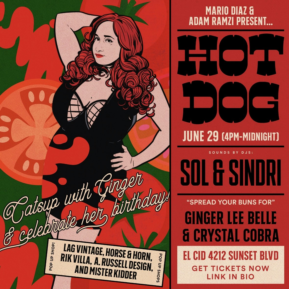 Hot Dog Sundays 4pm-close at Hollywood’s Iconic El Cid. Mario Diaz & Adam Ramzi present your Sunday afternoon Queer Bang. Early arrival encouraged, entry is based on capacity at any given time. Presented by Mario Diaz. This is a 21+ event