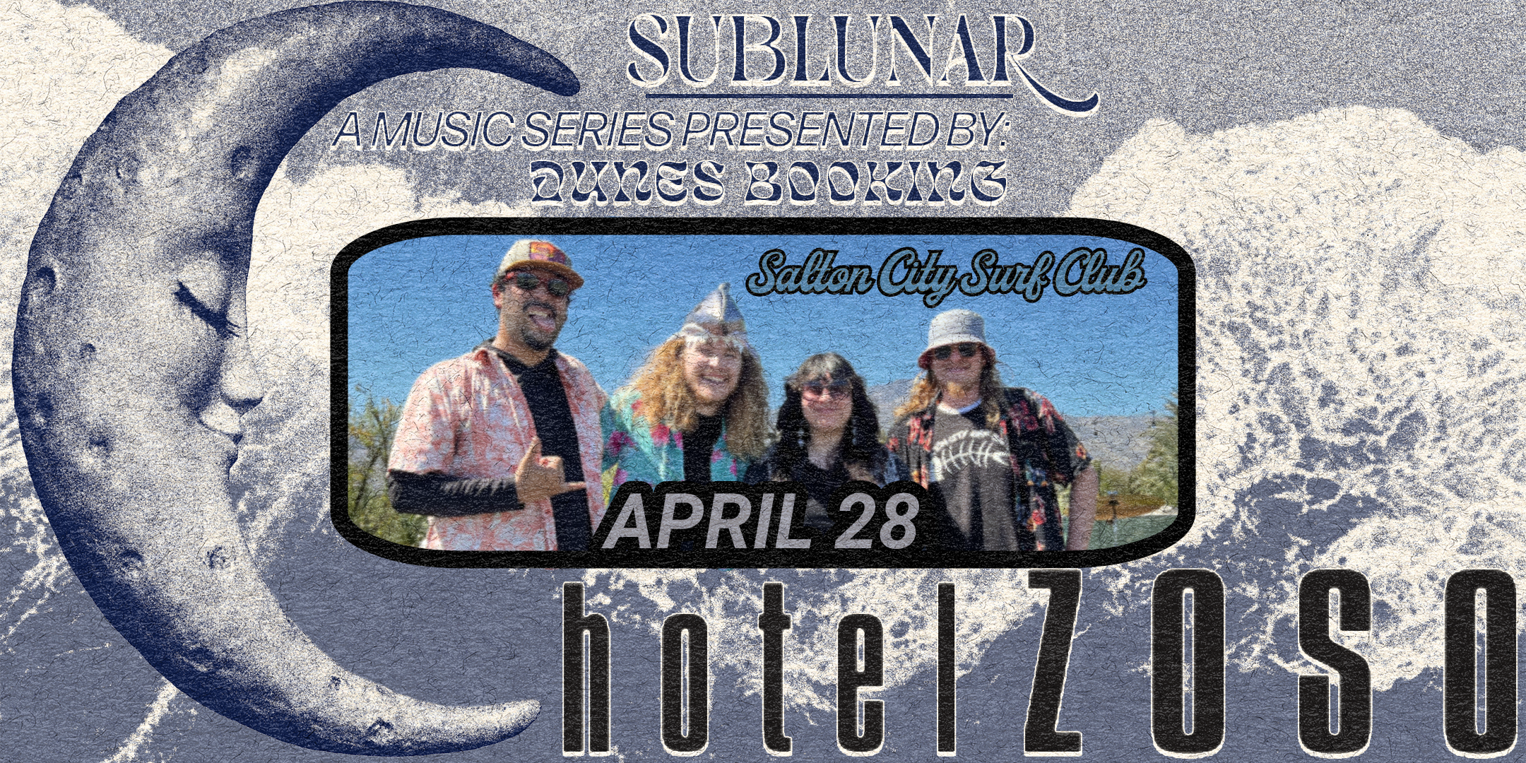 Start your week under the stars with Sublunar, a free live music series presented by Dunes Booking, happening every Monday night at Hotel Zoso in downtown Palm Springs. This ALL AGES poolside concert experience showcases the best up-and-coming bands from the Coachella Valley and all over Southern California, bringing fresh sounds to the desert in an unforgettable setting.