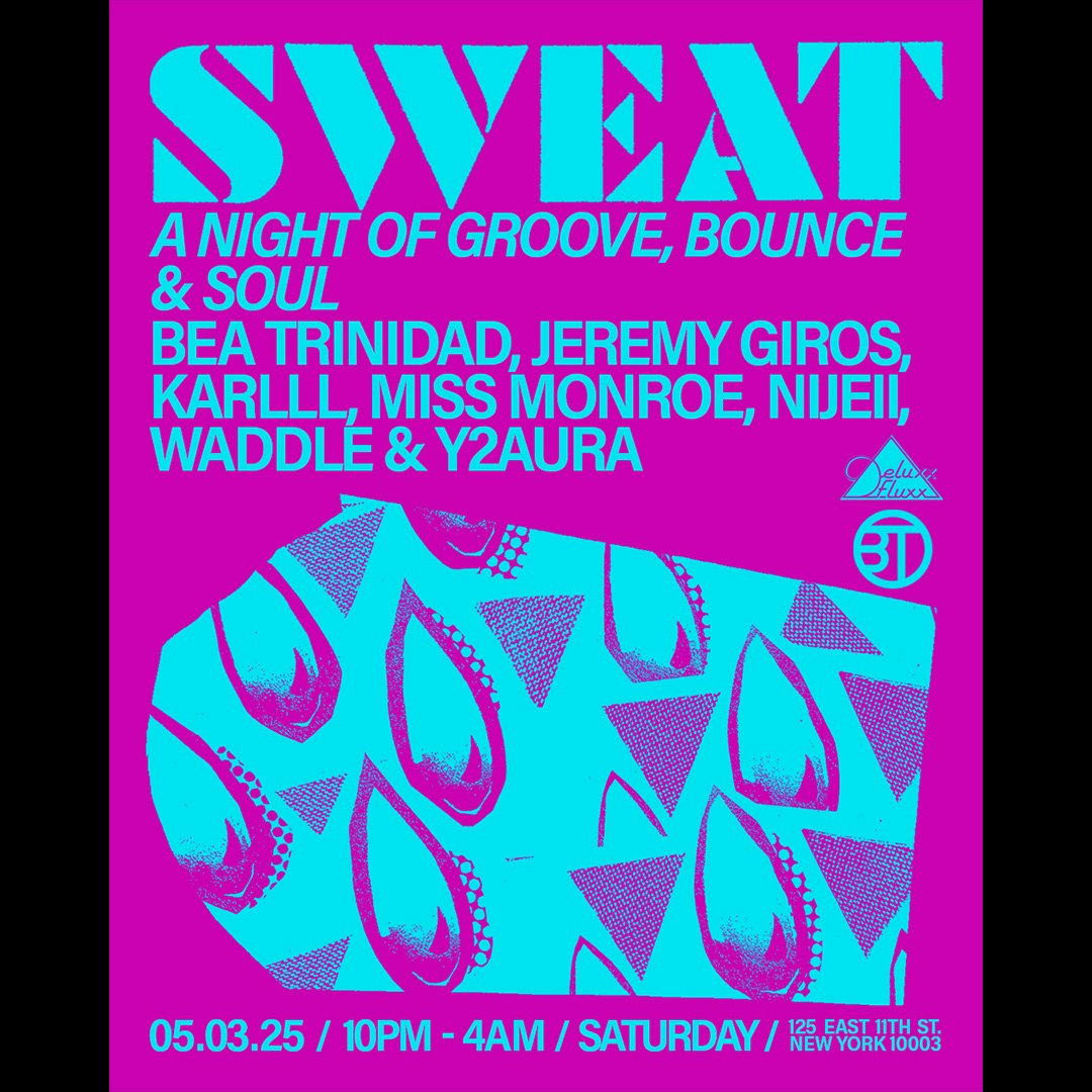 Ain’t no half-steppin’ at SWEAT. A night dedicated to the funk-laced bounce of Anderson .Paak, Kaytranada, Thundercat, Mac Miller, Channel Tres, Toro y Moi, and Steve Lacy—where hip-hop, R&B, funk, and house collide on the dancefloor.