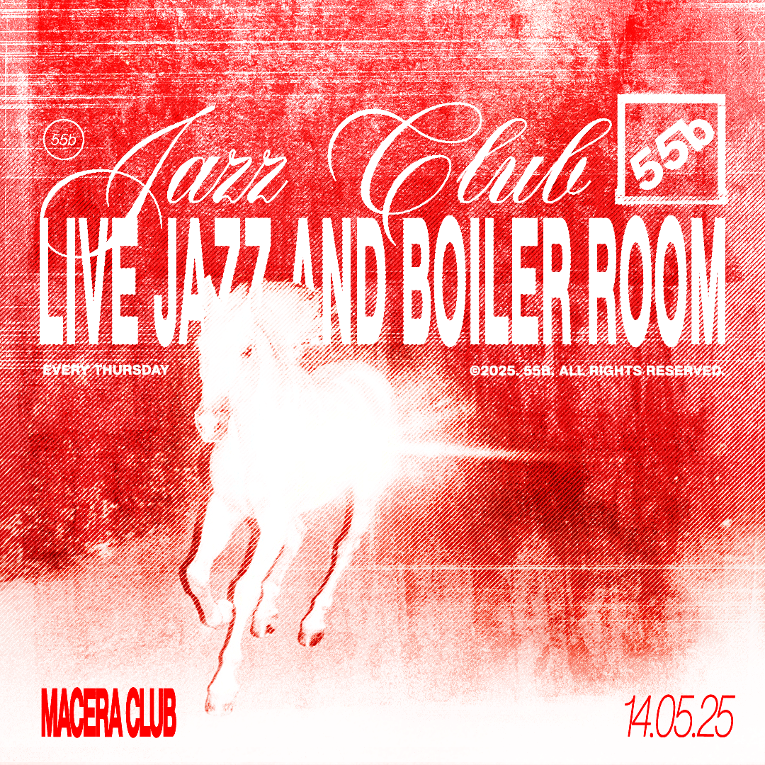 'JAZZ CLUB' by 55b 22:30 DOOR OPENING 23:00 a 01:00 LIVE JAZZ 01:00 a 04:00 BOILER ROOM Organizado por Macera Club. Para mayores de 18 años (necesario traer DNI).