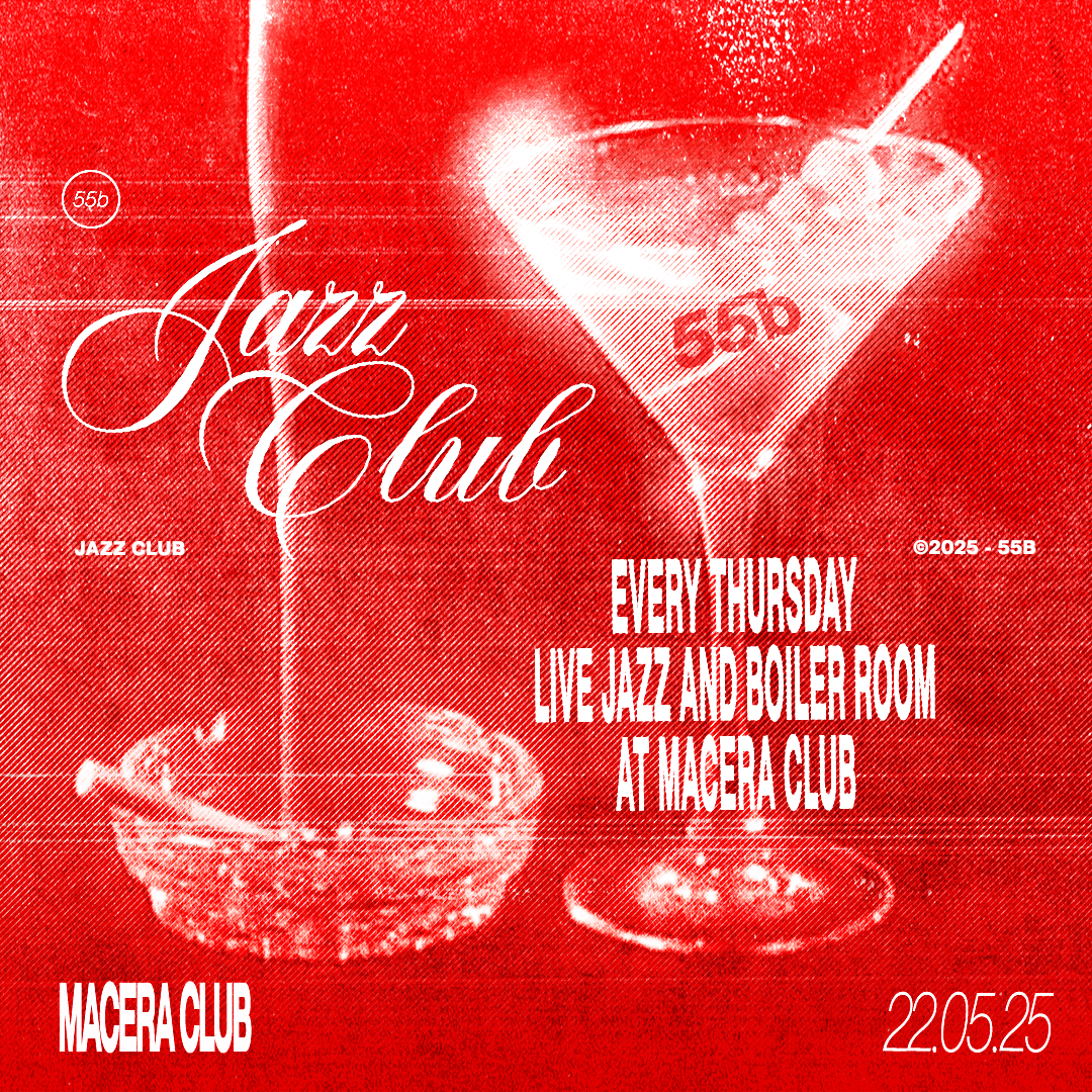 'JAZZ CLUB' by 55b 22:30 DOOR OPENING 23:00 a 01:00 LIVE JAZZ 01:00 a 04:00 BOILER ROOM Organizado por Macera Club. Para mayores de 18 años (necesario traer DNI).