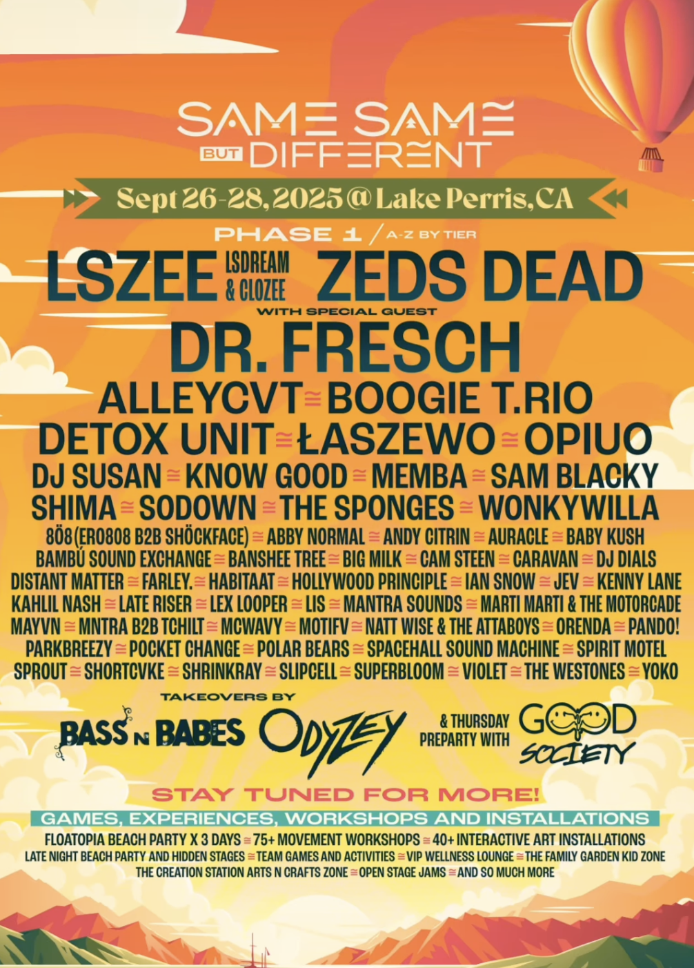 Join us lakeside at Same Same But Different 2025 in the sun-soaked embrace of Lake Perris, Southern California — where music, community, and magic collide in the most unexpected ways.