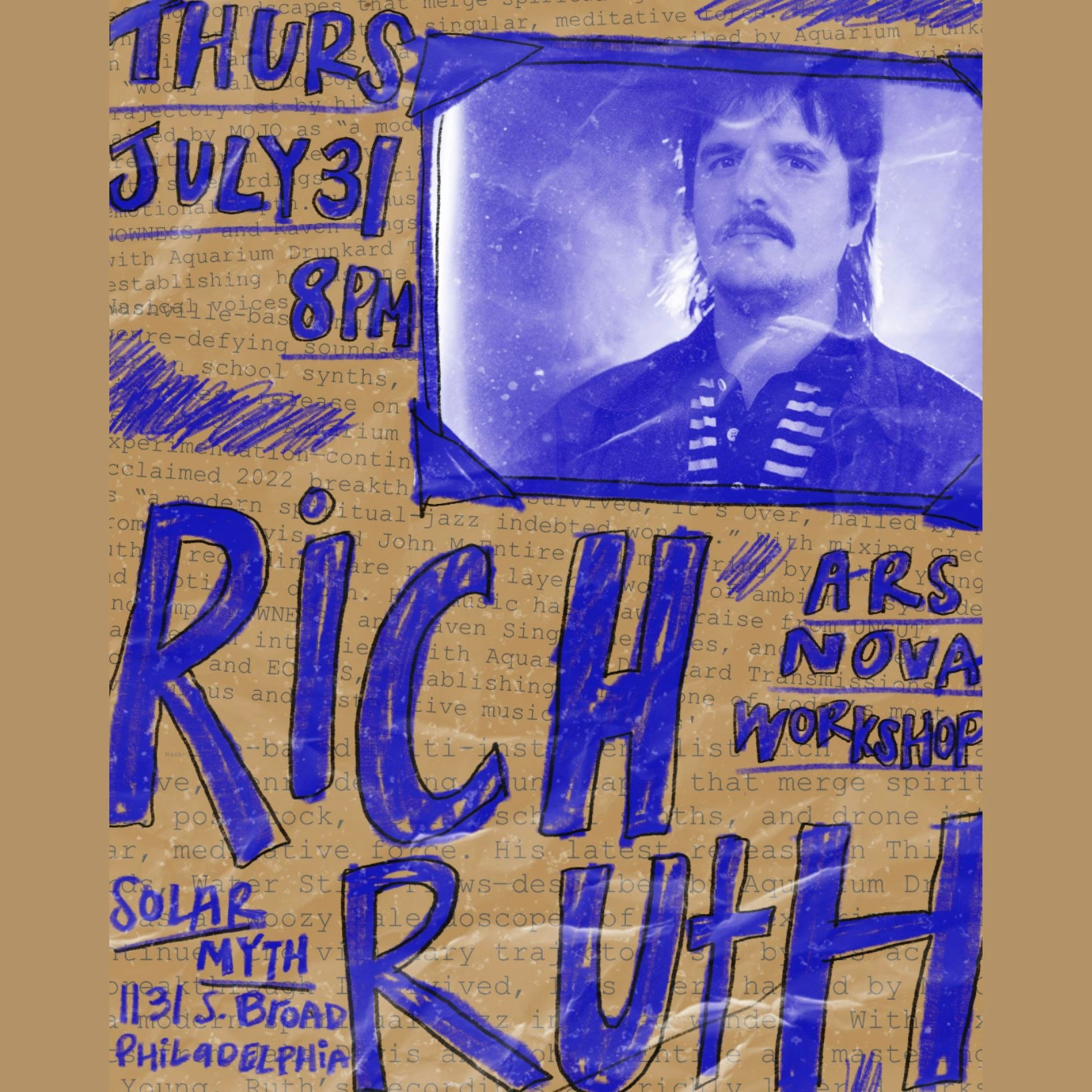 Ars Nova Workshop presents Nashville-based multi-instrumentalist Rich Ruth at Solar Myth on Thursday, July 31, 2025. Presented by Ars Nova Workshop This is an 21+ event.