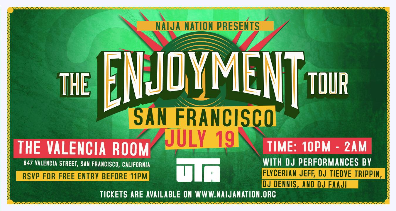 A night of pure Enjoyment as Naija Nation & UTA link up in SF. July 19th. Sounds by top DJs. Let’s vibe out.