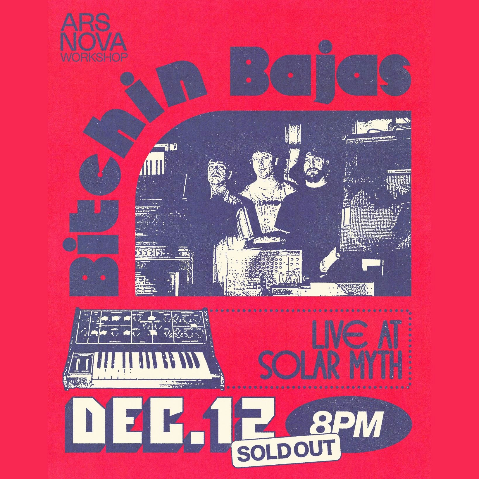 Please join Ars Nova Workshop for the return of Bitchin Bajas at Solar Myth on December 12, 2025, in celebration of their forthcoming LP, Inland See, out via Drag City.