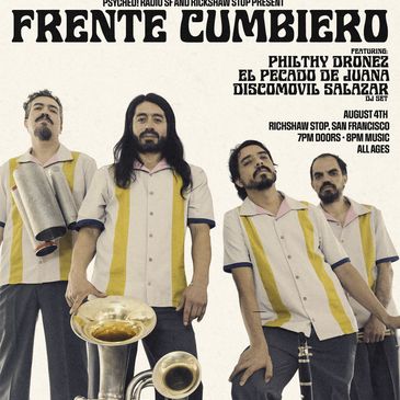 Frente Cumbiero: With a long and successful career, FRENTE CUMBIERO has become one of the biggest representatives in the exploration of cumbia’s sonic identity in Latin America. Headed by Colombian songwriter and producer Mario Galeano Toro (also founding member of Ondatrópica and Los Pirañas), Frente Cumbiero is recognized as a spearhead of Colombia’s new cumbia movement.