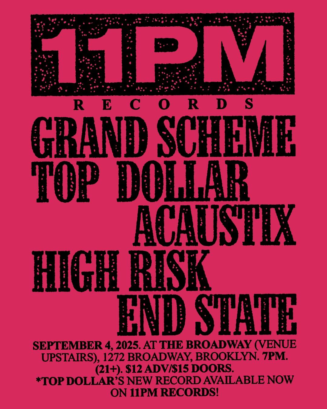 Grand Scheme + Top Dollar (11PM Records) live at The Broadway with Acaustix, High Risk + End State 7:00PM Doors 21+ $12 in advance // $15 day of show