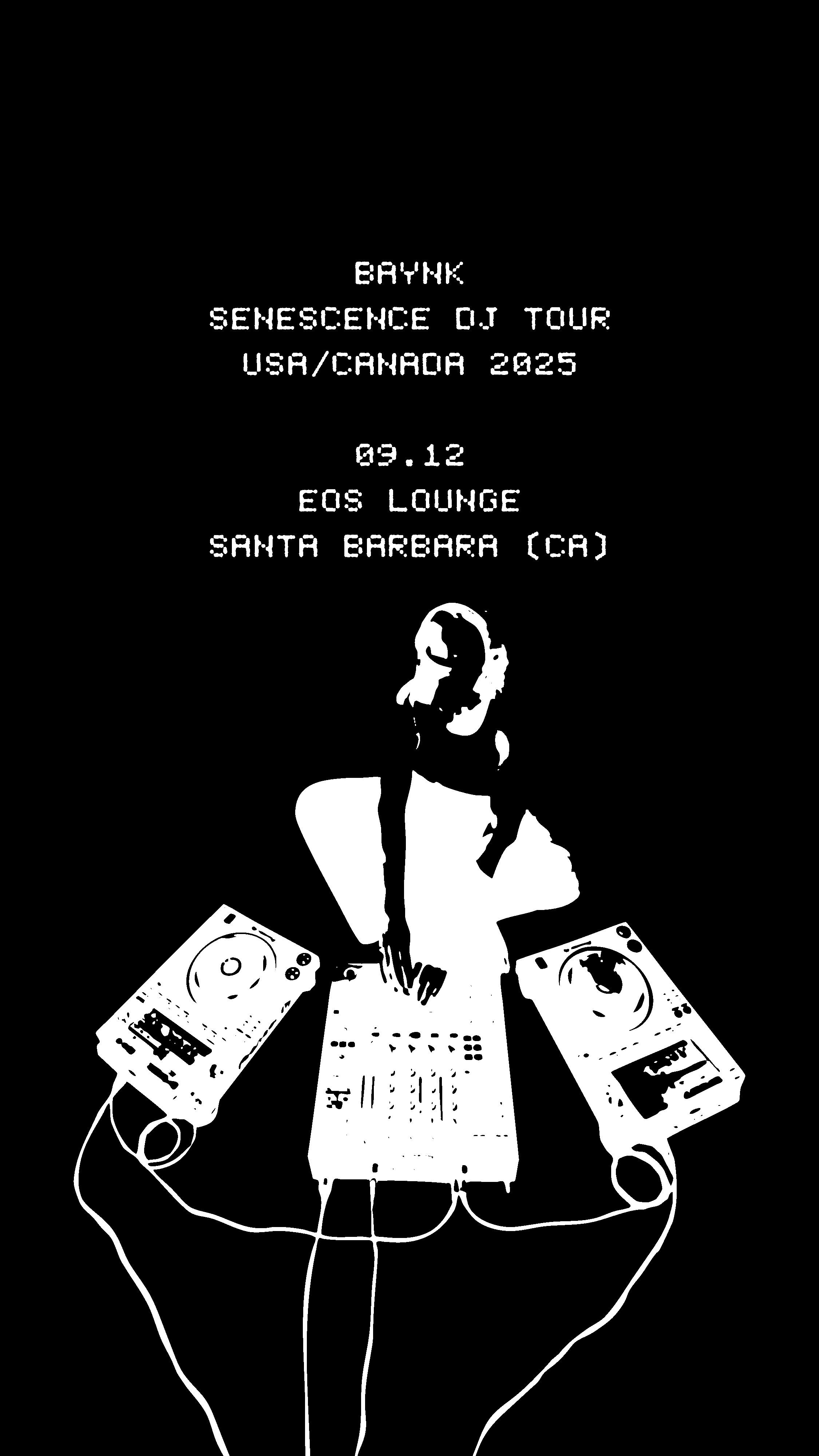 Baynk stops at EOS Lounge as part of his 'Senescence' tour on September 12th! Presented by EOS Lounge. This is a 21+ event