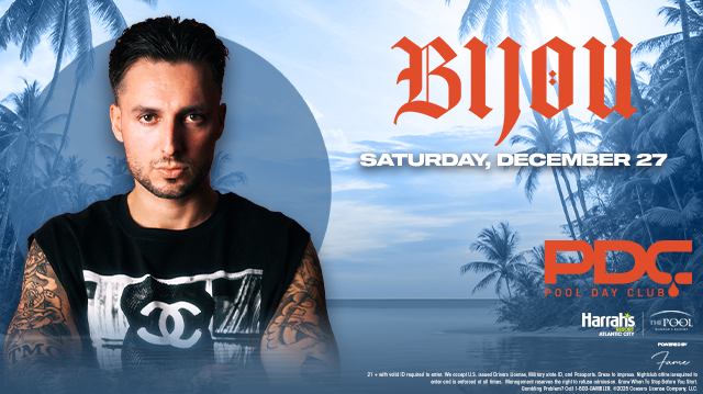 BIJOU at The Pool Day Club | Atlantic City's Only Year Round Pool PartyTired of the winter cold? Looking for the absolute hottest things to do in Atlantic City? Escape to a tropical paradise on Saturday, December 27th, as we turn up the heat for an unforgettable day event. The Pool Day Club at Harrah's Resort invites you to dive into a world where it's always 82 degrees under our massive glass dome. This is the Atlantic City pool party experience you can't get anywhere else on the Jersey Shore, and we're bringing in a true house music icon to provide the soundtrack.