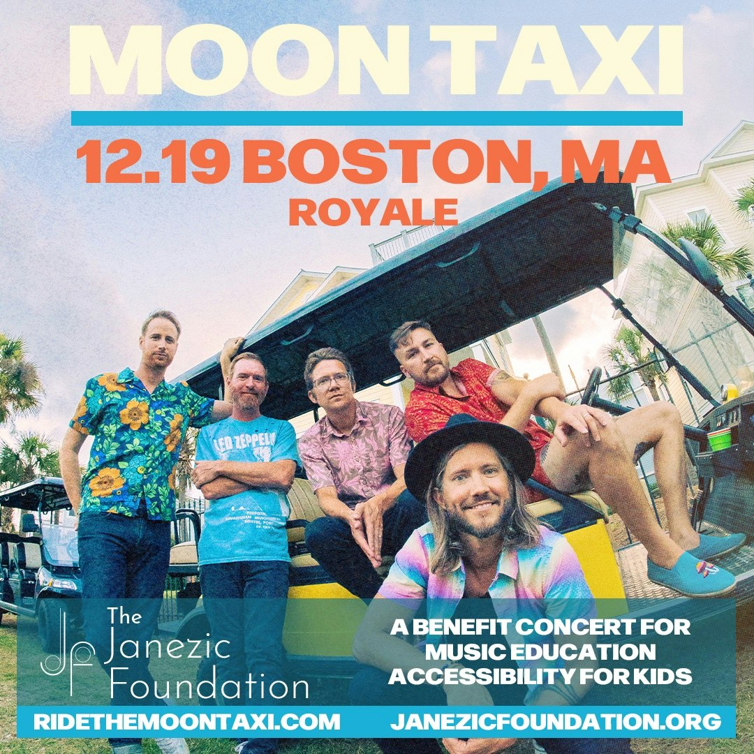 The Janezic Foundation proudly presents Moon Taxi! As a 501(c)(3) nonprofit, we are dedicated to making music education accessible to all children, regardless of background or financial means. This concert supports our mission to ensure every child has the opportunity to explore the transformative power of music. Join us for an unforgettable night while helping to nurture the musical future of kids across Massachusetts! Support by The Aldous Collins Band, Alex Slater and Nate Fuller